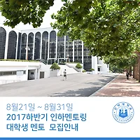 | 2017하반기 인하멘토링 대학생 멘토 모집안내 (0) | 2017.08.16 |